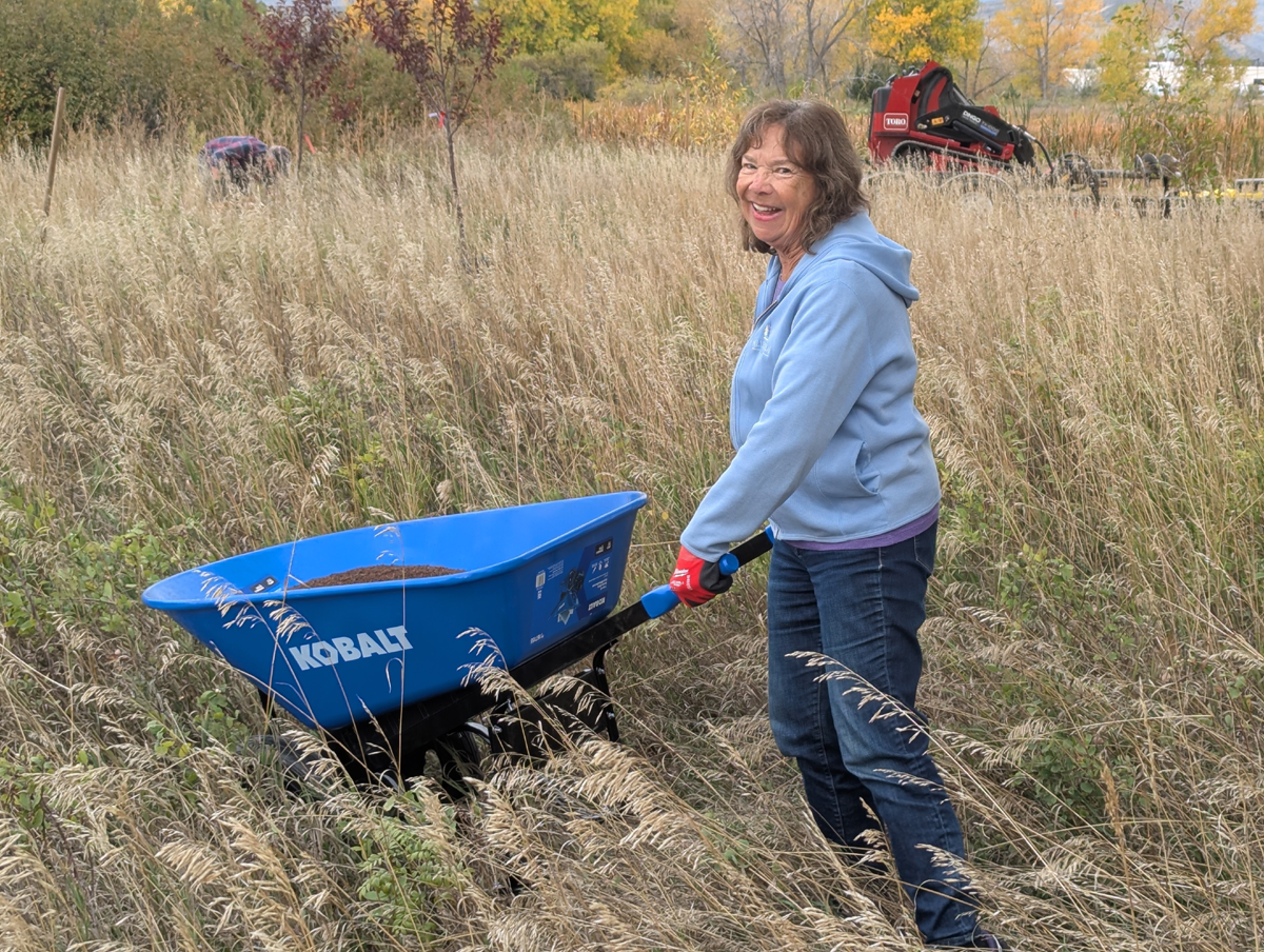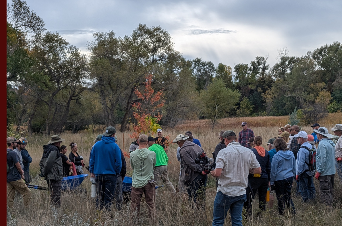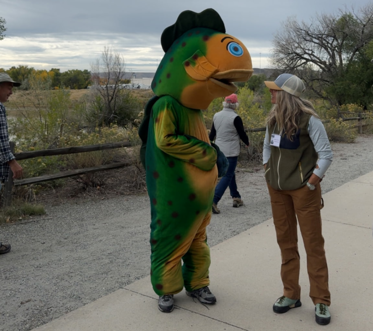 Because our Chapter received a coveted Embrace A Stream grant of $10,000, we were able to host a tree planting with the city of Wheat Ridge on October 10. Around 40 trees were planted, and volunteers were treated to TU hats, a free lunch, and a surprise visit from Fraser the Trout.